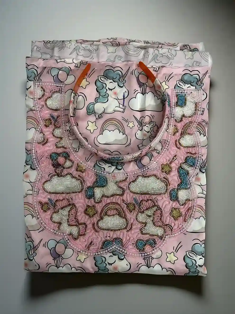 دلّلي صغيرتك بلمسة سحرية مع هذا القماش المصنوع من الحرير الإيطالي الفاخر، والمزيّن برسومات ديزني المرحة. ناعم وأنيق مع تطريزات لؤلؤية وألوان حالمة، مثالي لعمر 3 إلى 12 سنة.