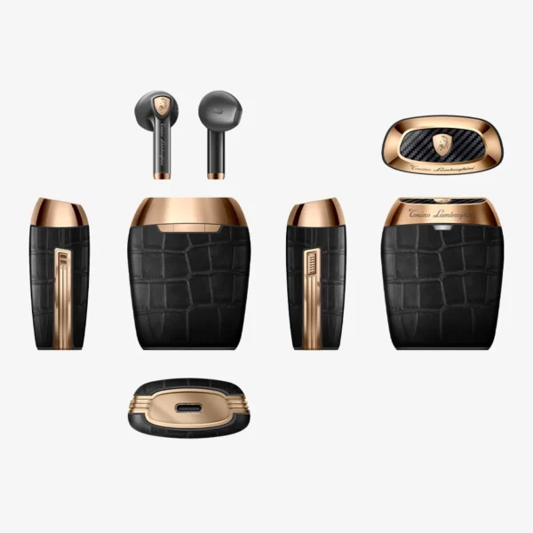 استمتع بالفخامة المستقبلية مع سماعات TL69 من تونينو لامبورغيني. تصميم راقٍ بجلد العجل الفاخر وملمس ألياف الكربون، مع شعار مطلي بالذهب عيار 18 قيراط – كل تفصيلة تعكس الأناقة الإيطالية.